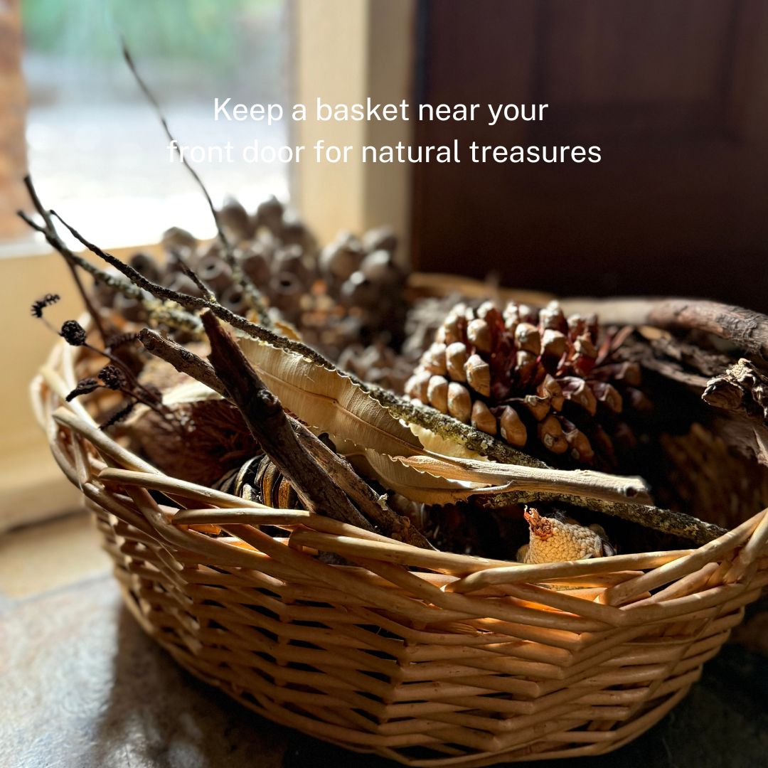 Nature baskets at the ready - Use baskets or jars to store treasures collected on nature walks - leaves, seed pods, feathers, and stones. Having these natural materials on display sparks ideas and keeps kids connected to the outdoors. You might like to keep a basket by the front door, ready for those natural treasures they bring home.