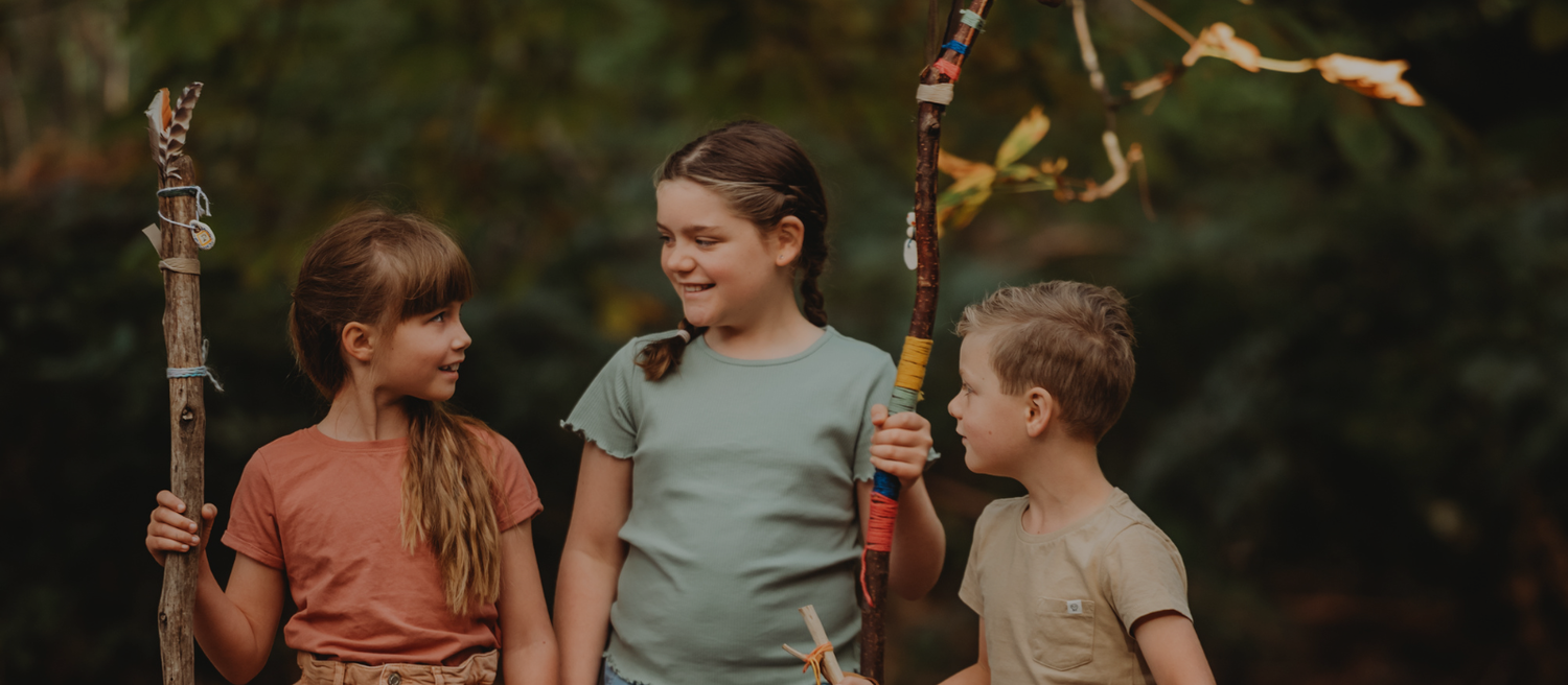 Good choices for little kids aged around 3-5 are Wild Imagination where you can start with projects and activities like making mud cakes, stick people and nature masks for younger children, and graduate up to projects like creating story stones, clay tree faces, basic whittling and fabric printing as they get older and more confident.