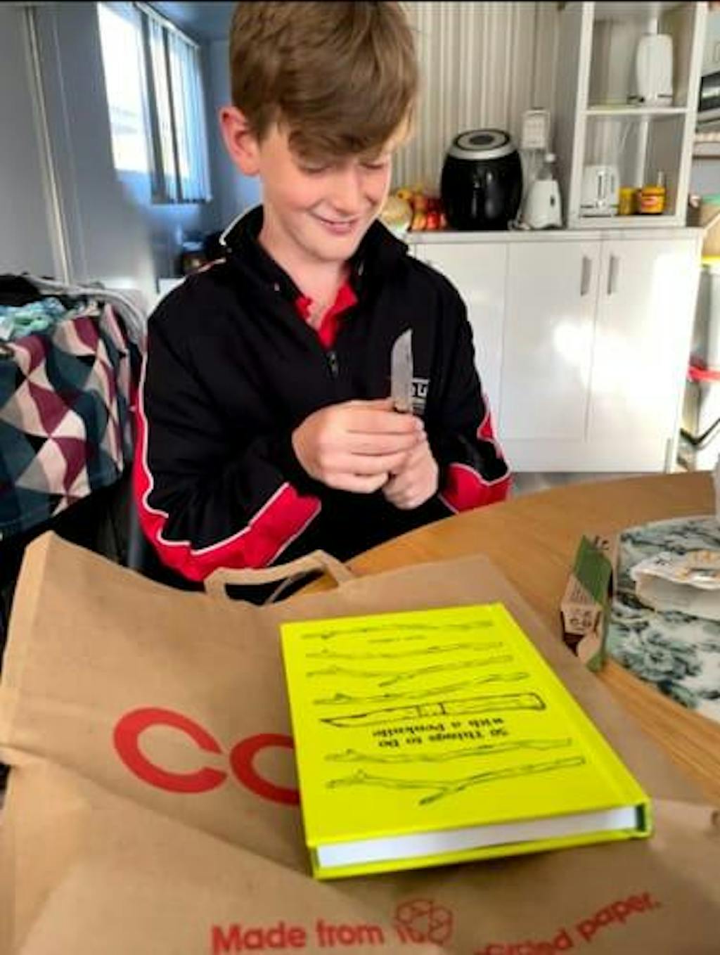 Birthday Girl super happy with her present! Loves the gloves as they feel super safe, the drill came in handy at her Wild Craft birthday party, and Dad even borrowed her knife to carve her cake into a Dragon! Love these gifts - looking forward the the Penknife book restock! #moregreenlessscreen for the win :-)